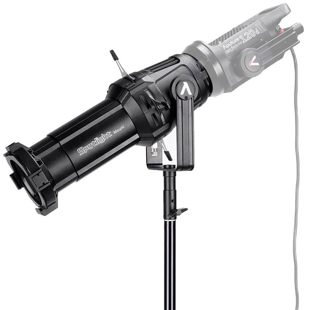 - Como os outros modificadores de luz de alta qualidade da Aputure, o Spotlight Mount segue a filosofia de versatilidade e modularidade e usa o Bowens Mount, permitindo o uso com Light Storm C120d II e C300d.