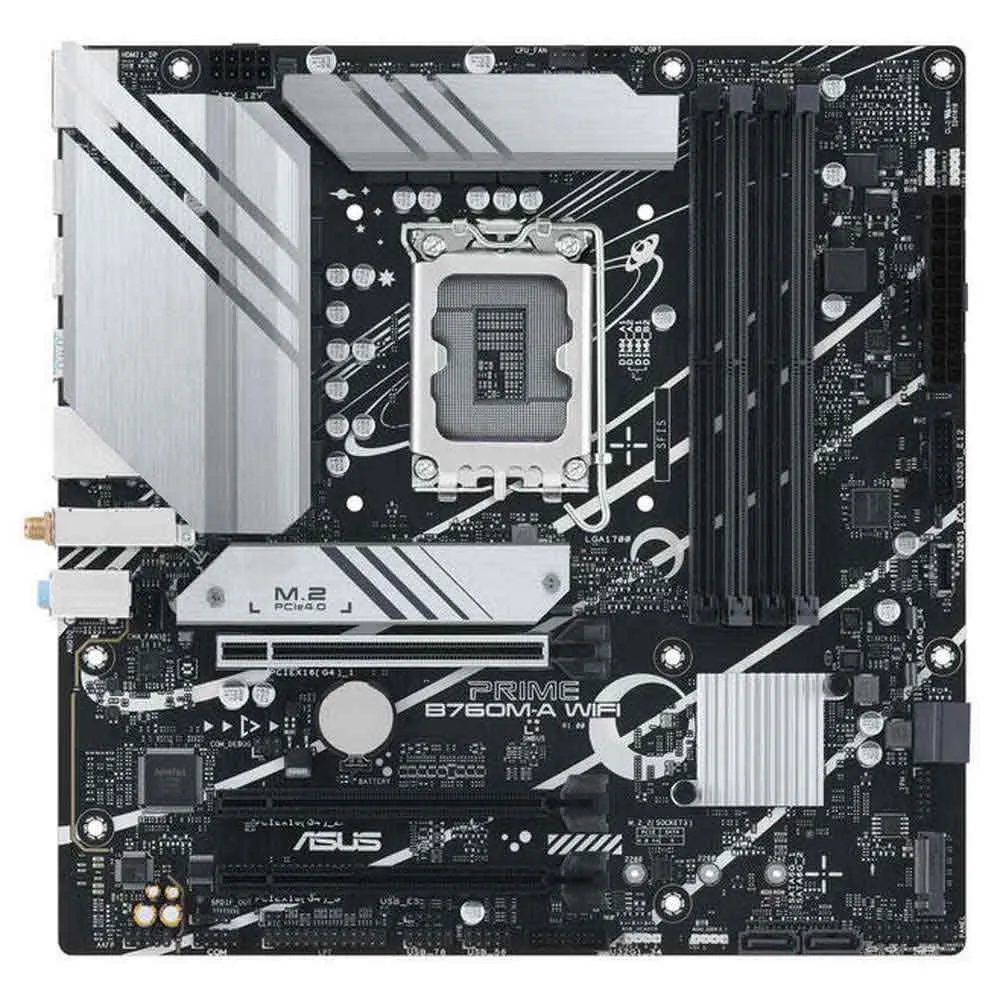 PRIME B760M-A WIFI - Placa-mãe mATX Intel B760 (LGA 1700) com PCIe 4.0, DDR5, 2x M.2, 2,5Gb Ethernet, WiFi 6, DisplayPort, 2x HDMI, SATA 6 Gbps, USB 3.2 Gen 2, USB 3.2 Gen 1 Tipo C, Aura Sync.