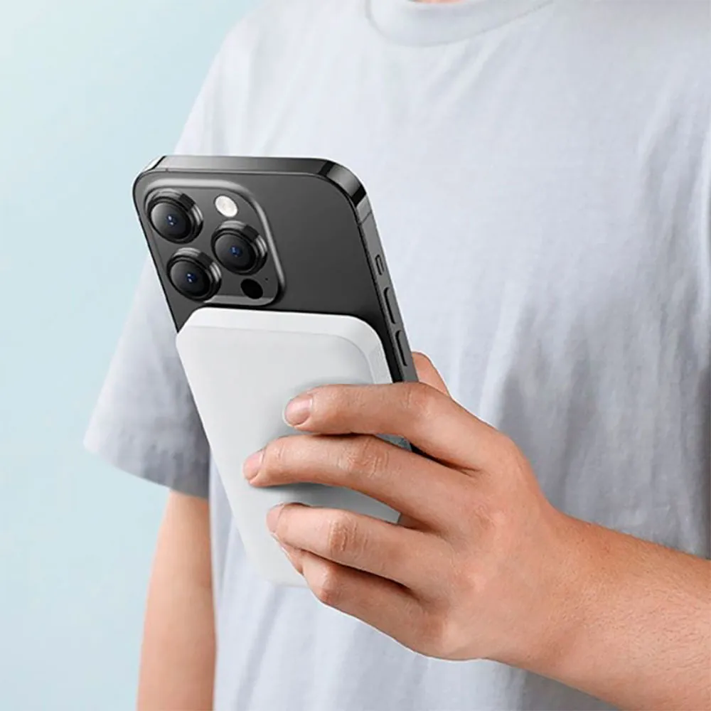 5000mAh - USB-C - Carregamento Sem Fio de 15W - Compatibilidade MagSafe - Adesão Magnética - Carregamento Rápido de 20W - Cabo Tipo C - Branco.