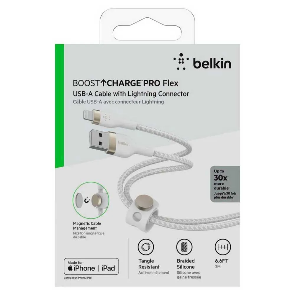 Nossos cabos trançados de silicone BOOST CHARGE PRO Flex adicionam durabilidade e flexibilidade à sua carga. Eles são até 30 vezes mais duráveis do que os cabos comuns, oferecendo uma solução de carregamento de longa duração que não fica desgastada e emaranhada. Inclui um sistema de gerenciamento de cabos magnéticos para maior comodidade.