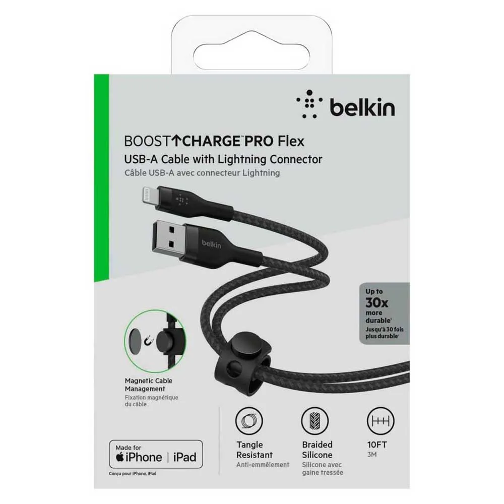 Nossos cabos trançados de silicone BOOST↑CHARGE PRO Flex adicionam durabilidade e flexibilidade à sua carga. Eles são até 30 vezes mais duráveis do que os cabos comuns, oferecendo uma solução de carregamento de longa duração que não fica desgastada e emaranhada. Inclui um sistema de gerenciamento de cabos magnéticos para maior comodidade.