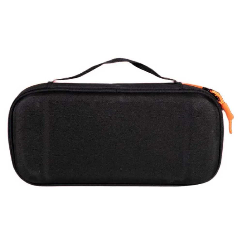Um tipo diferente de bolsa: A parte de trás é rígida, enquanto a frente é mais acolchoada. Muito espaço de armazenamento: O bolso frontal possui um compartimento de malha para guardar pequenos acessórios de console. Também possui um bolso interno. Armazene e carregue até 10 jogos: A aba protetora inclui slots para manter seus jogos favoritos com você. Alça de transporte: Leve-a com você confortavelmente. Bolsa muito espaçosa: Você pode até guardar o adaptador para transformar seu Joy-Con em um controle.