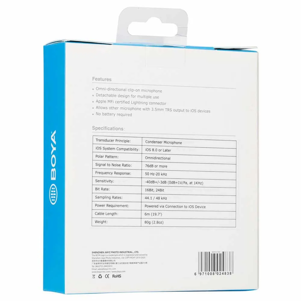 Características Boya Microfone BY-M2 para smartphone e câmera de vídeo