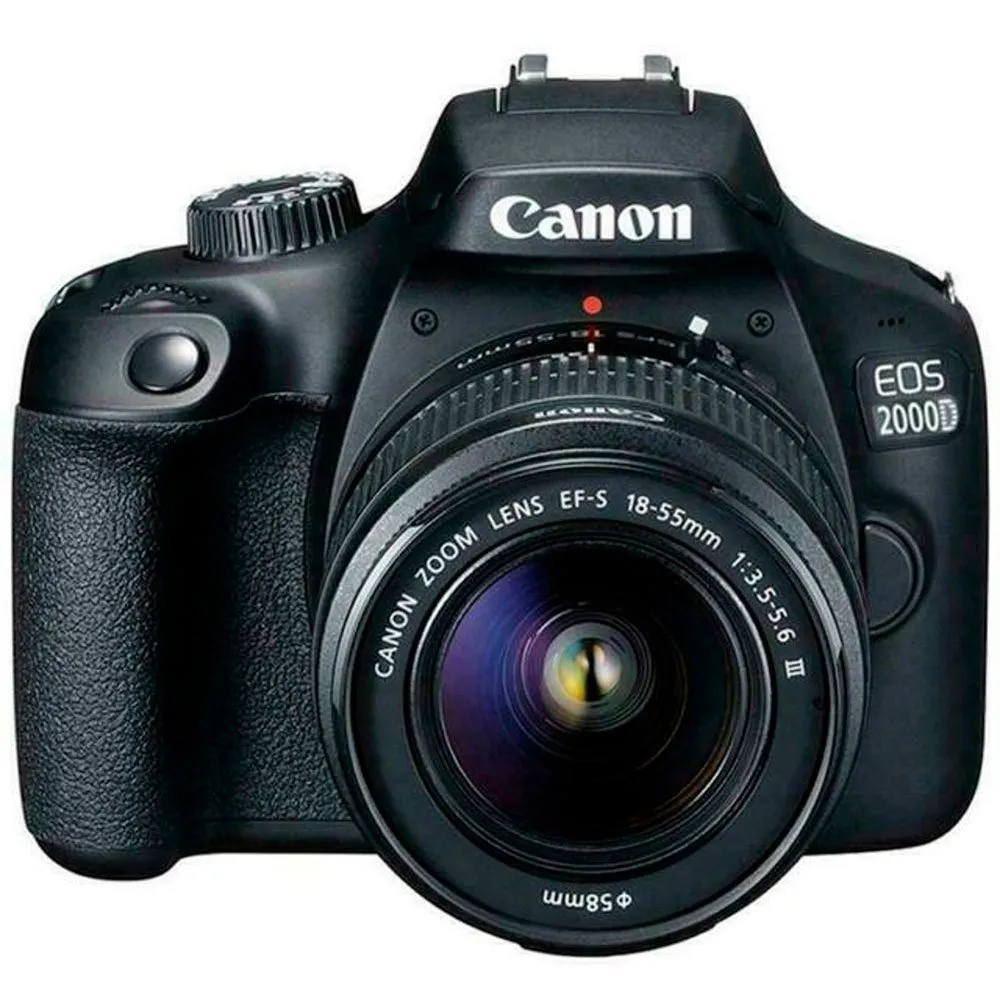Eleve-se à qualidade DSLR com a Canon EOS 2000D. Fotografe sem esforço fotos detalhadas de 24.1 MP e vídeos cinematográficos Full HD, mesmo em condições de pouca luz, graças ao seu grande sensor APS-C. Este kit inclui uma versátil objetiva 18-55mm, perfeita para tudo, desde paisagens amplas até retratos com um belo desfoque de fundo. Enquadre as suas fotos com o visor ótico ou o ecrã de 3.0”, e partilhe instantaneamente as suas histórias usando Wi-Fi e NFC incorporados. Ideal para capturar os momentos da vida com controlo criativo. Ficha EU