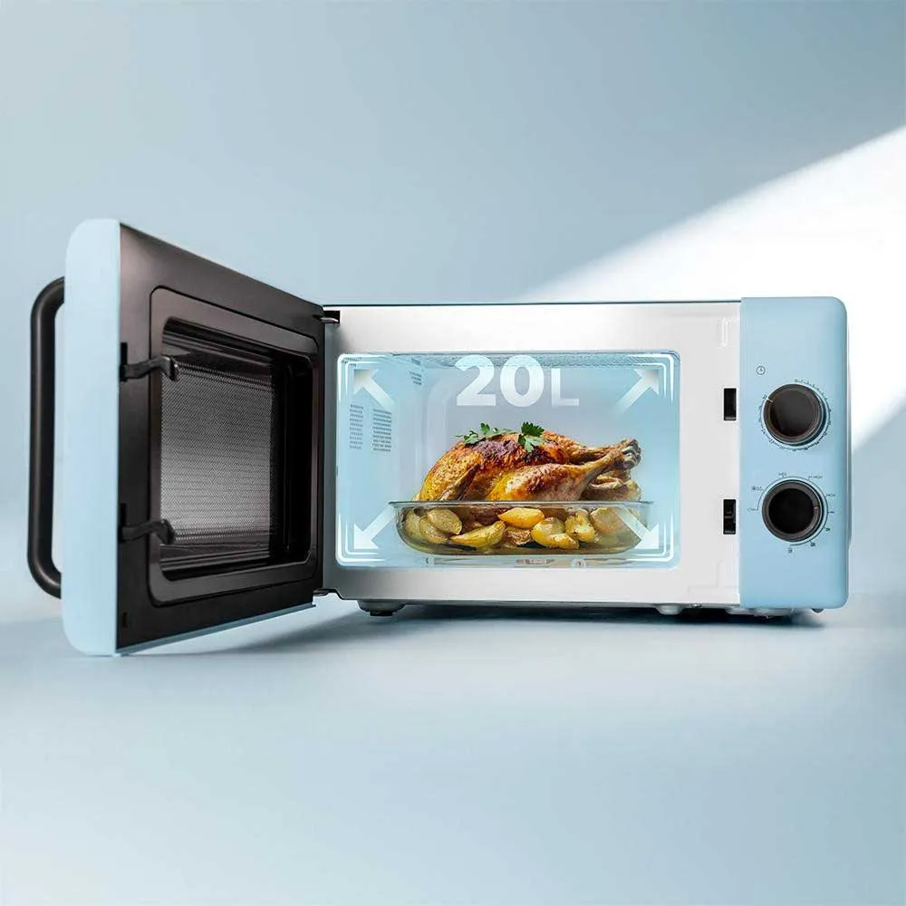 - Com sua capacidade de 20 L e um design compacto, este micro-ondas maximiza seu espaço interior, tornando-se o aliado perfeito para preparar seus pratos favoritos com total conforto.