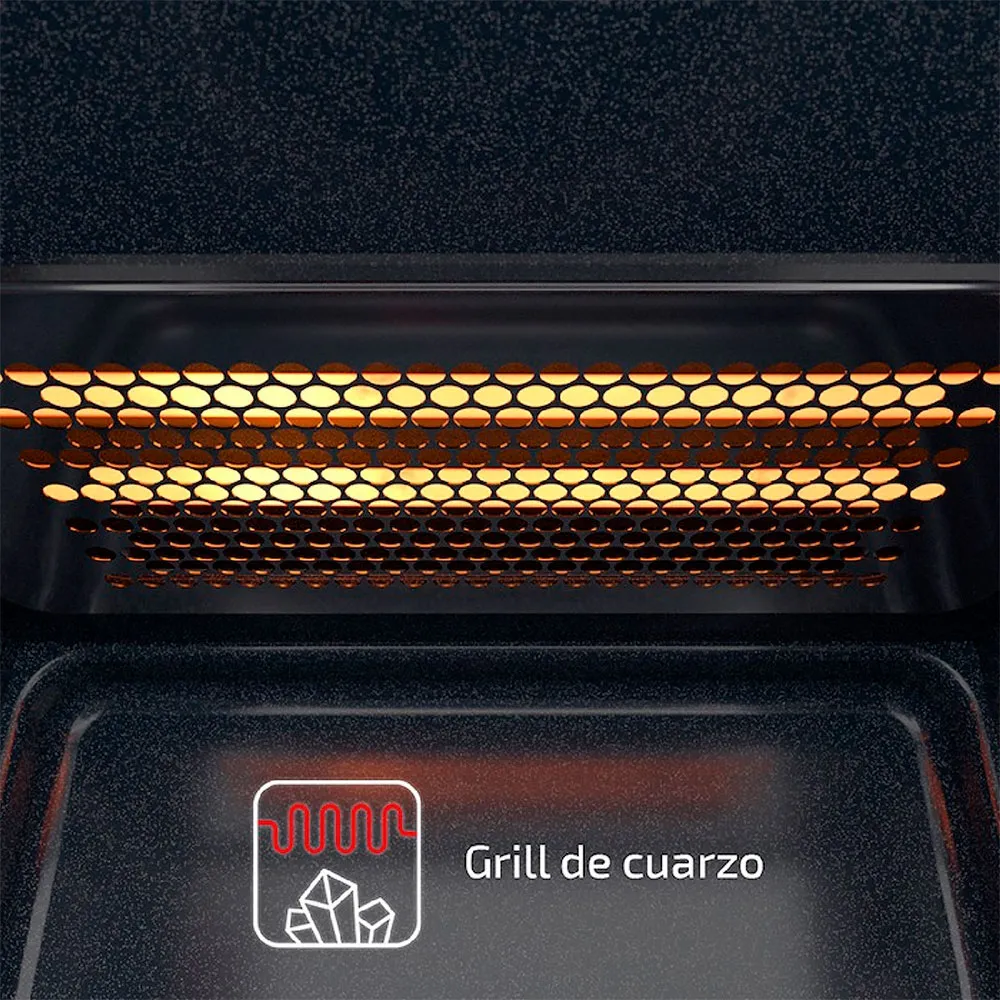 O grill de quartzo integrado é uma virada de jogo, aquecendo mais rápido do que os elementos de aquecimento convencionais para dourar, gratinar e assar perfeitamente seus pratos favoritos.