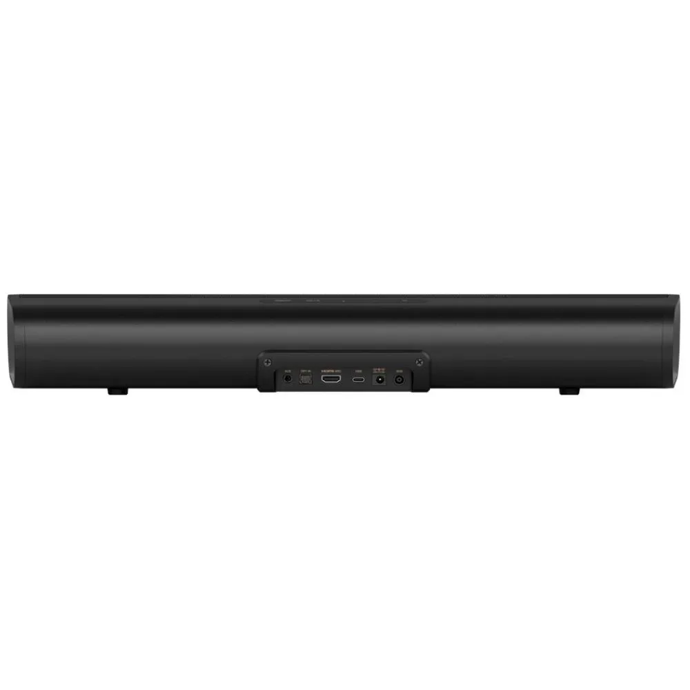 Entradas adicionais incluem uma entrada óptica digital para consoles e reprodutores de Blu-ray, uma entrada AUX de 3.5 mm para fontes analógicas e uma porta USB para reprodução direta de áudio.