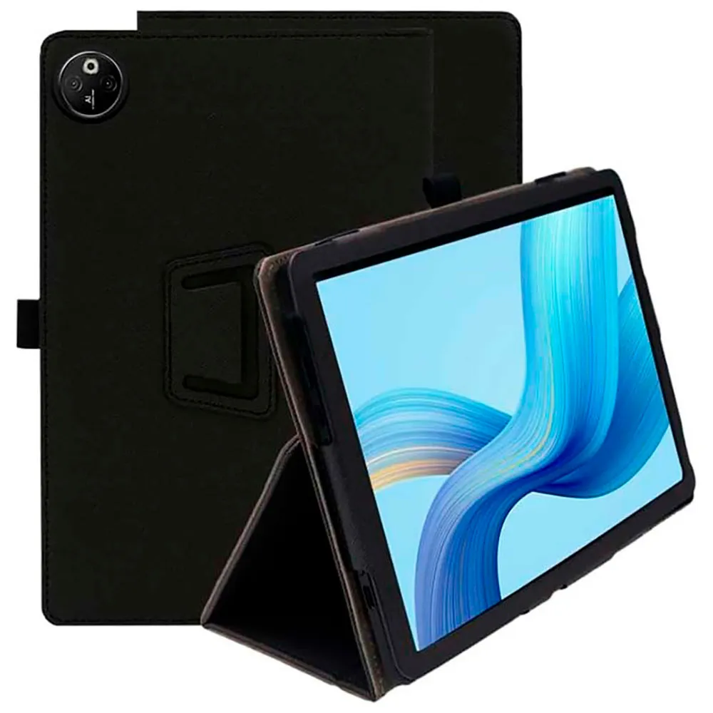 É feita de couro sintético PU e possui um design requintado que cobre o tablet completamente, além de apresentar acesso perfeito a todas as portas e botões.
