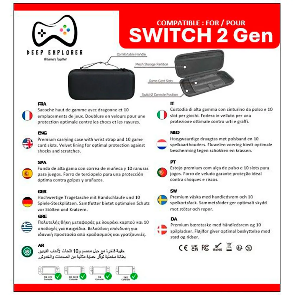 Embarque em suas aventuras de jogo com total confiança. A CAPA DEEP EXPLORER para Nintendo Switch e Switch OLED é mais do que apenas uma capa protetora; é uma atualização essencial para todo gamer apaixonado. Projetada para aqueles que exigem proteção superior e jogabilidade aprimorada, esta bainha premium protege seu console dos rigores do uso diário, desde quedas e batidas acidentais até arranhões e desgastes cotidianos. Eleve sua experiência de jogo e garanta que seu console permaneça em perfeitas condições, pronto para qualquer desafio que surgir.