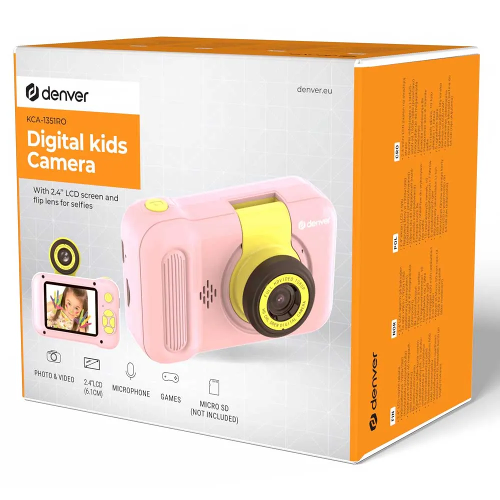 - A DENVER KCA-1351RO possui uma lente flip, tornando mais fácil para jovens fotógrafos capturarem selfies perfeitas. Diga xis e fotografe!