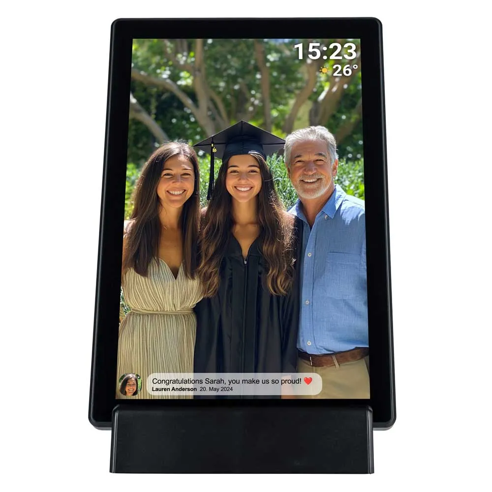 - O proprietário da moldura digital tem controle sobre a exibição, os amigos podem ser adicionados e excluídos diretamente na tela sensível ao toque