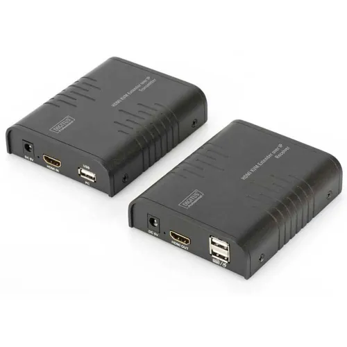 O kit extensor HDMI KVM Digitus consiste em uma unidade transmissora (localização local) e uma unidade receptora (localização remota).