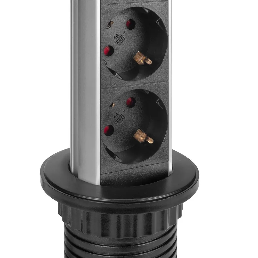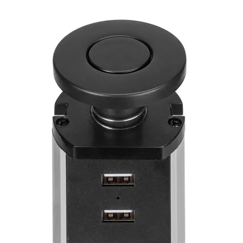 O conector multi-tomada ou torre de tomadas elevável é projetado para adicionar funcionalidade com sua completa integração em móveis de cozinha, escritório e casa.
