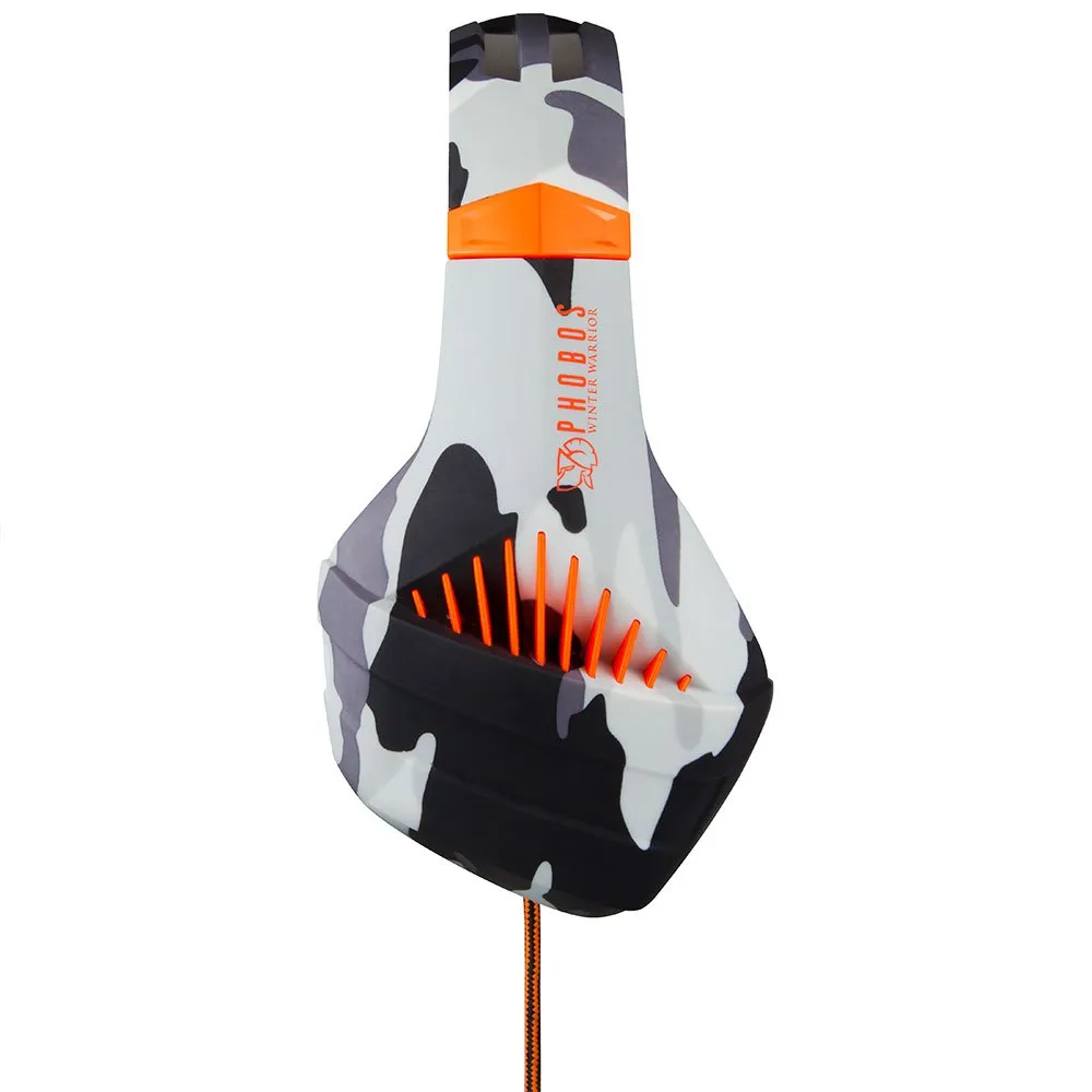 Os fones de ouvido Phobos Winter Warrior possuem um som estéreo HD com um alto-falante de 50 mm. Seu microfone dobrável e unidirecional é perfeito para jogos online.