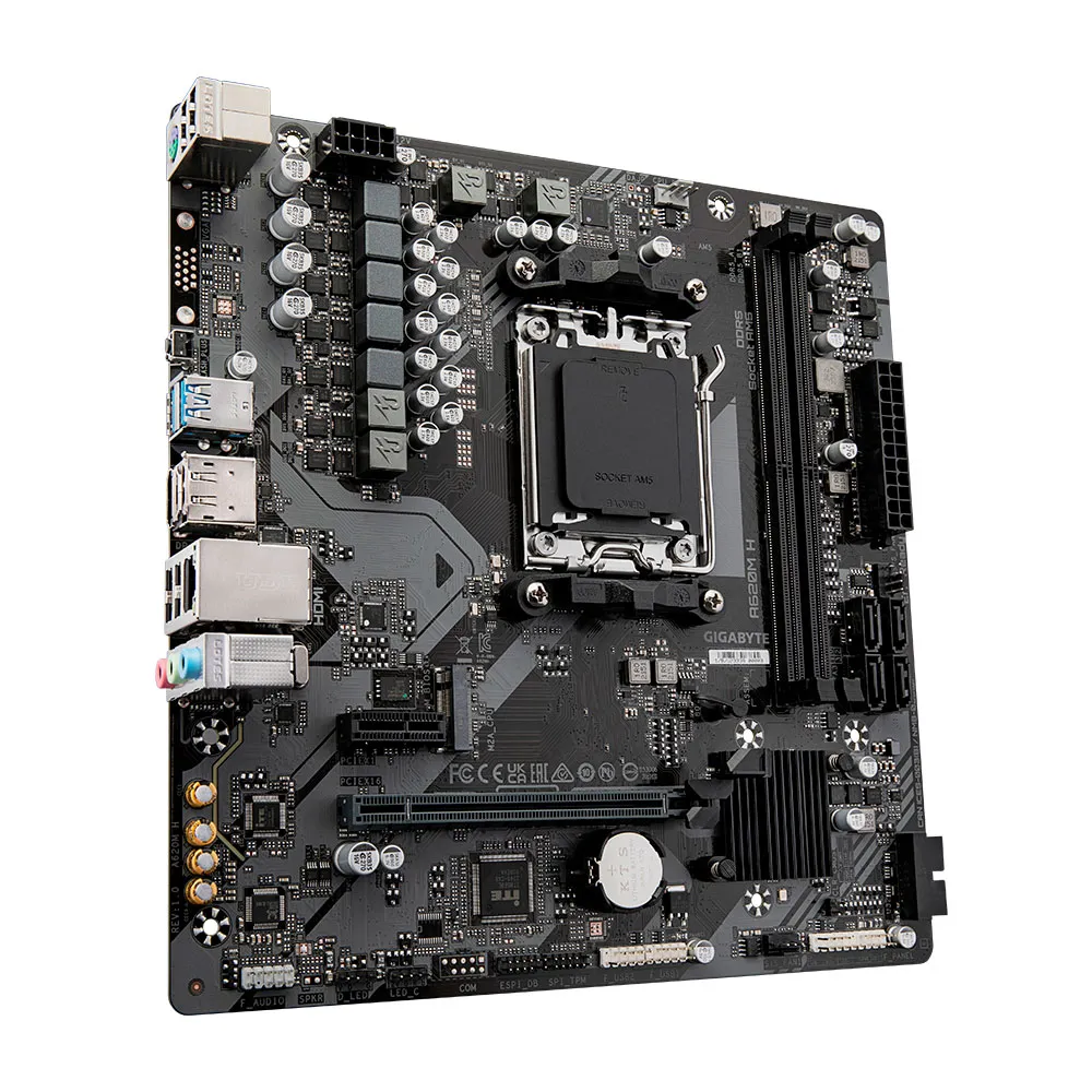 Placa-mãe GIGABYTE A620M H - Suporta CPUs AMD Ryzen 7000, VRM digital de 5+2+2 fases, até 7200MHz DDR5 (OC), 1xPCIe 4.0 M.2, GbE LAN, USB 3.2 Gen 1.