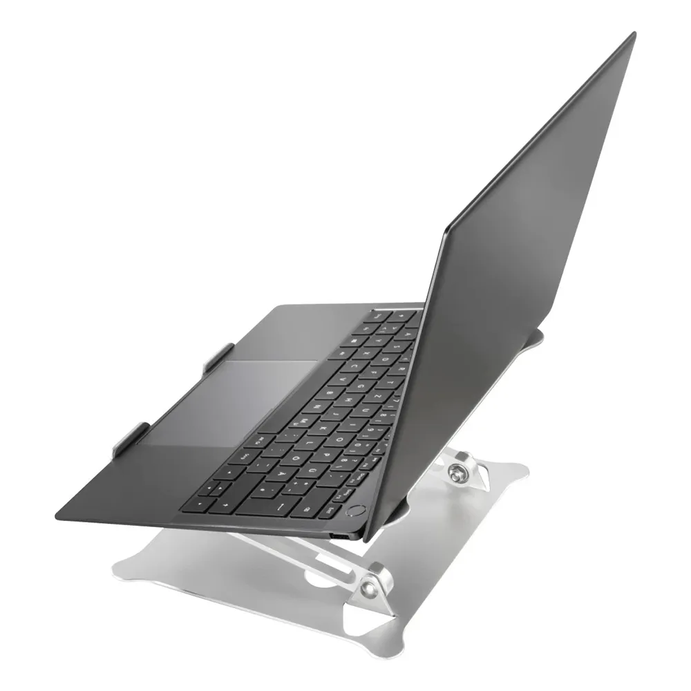 Criado para força e elegância, este suporte oferece uma plataforma notavelmente robusta e segura para o seu valioso portátil. Almofadas emborrachadas antiderrapantes na base e nos braços de suporte evitam qualquer movimento ou arranhão, mantendo o seu dispositivo firmemente no lugar. A sua construção robusta proporciona total tranquilidade, enquanto o acabamento minimalista e jateado adiciona um toque de estilo sofisticado a qualquer ambiente de trabalho. Quando não está em uso, o seu design dobrável inteligente permite que se torne incrivelmente compacto e leve, tornando-o o companheiro de viagem perfeito para trabalhadores híbridos e nómadas digitais.