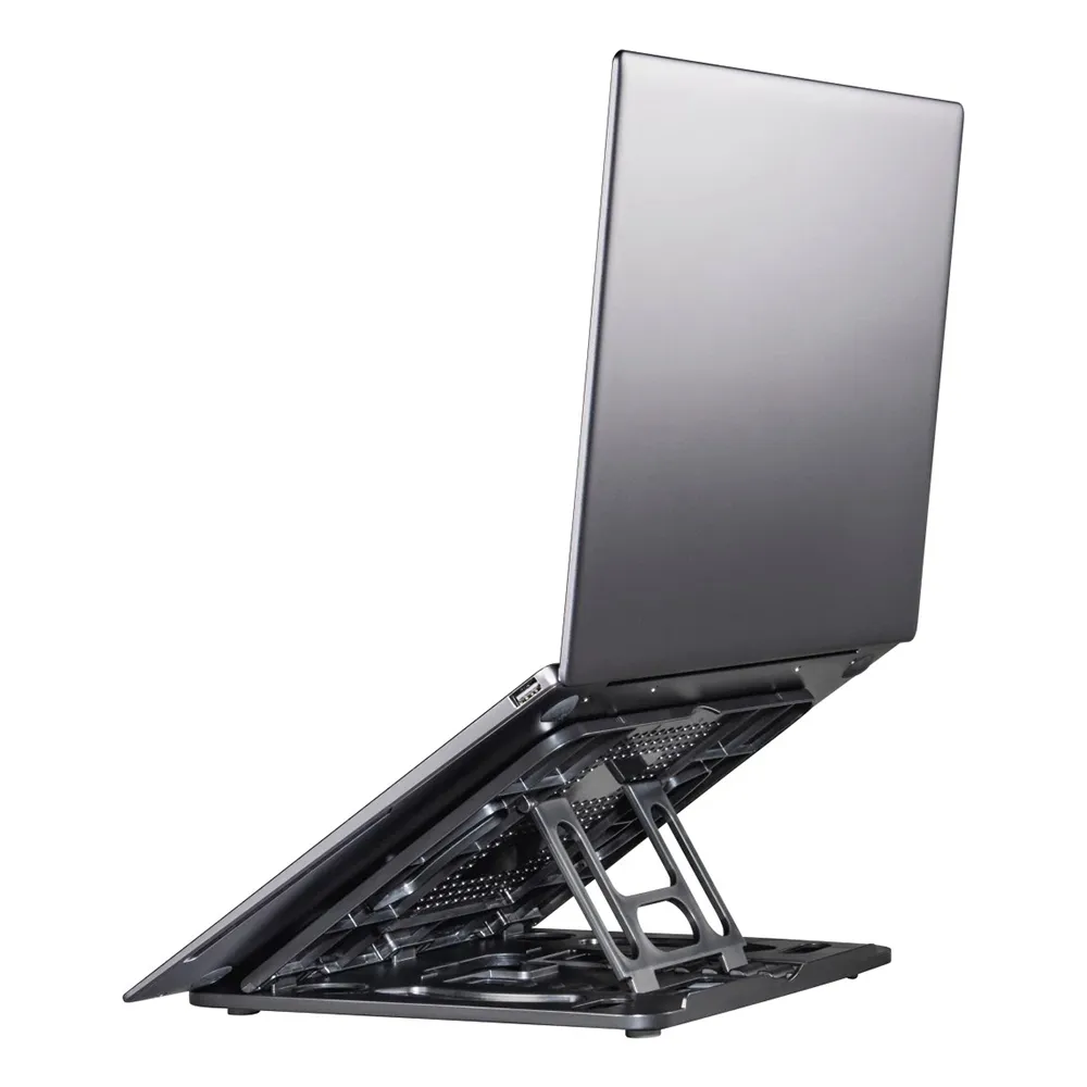Circulação de Ar Aprimorada: O design elevado melhora o fluxo de ar ao redor do seu dispositivo, prevenindo o superaquecimento e mantendo o desempenho ideal Plataforma Segura e Estável: Equipada com uma superfície antiderrapante e pés emborrachados para manter o seu portátil firmemente no lugar e evitar que o suporte deslize na sua secretária.