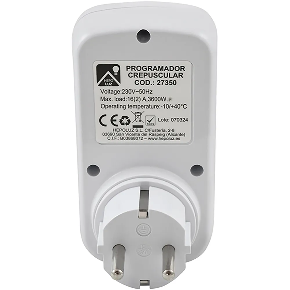 Características Hepoluz Plugue programável crepuscular