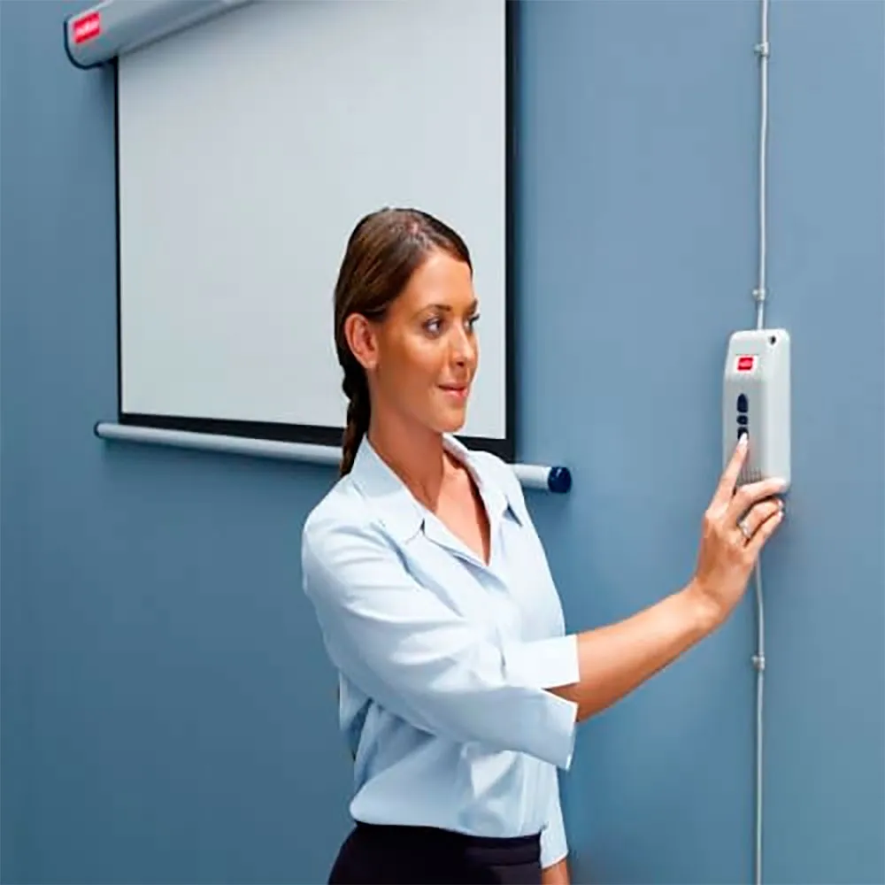 - Projeção sem complicações - interruptor de parede simples para levantar ou abaixar a tela.