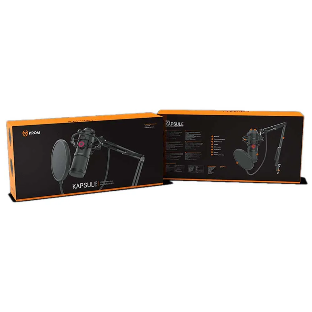 Krom Kapsule é um microfone condensador duplo de qualidade de estúdio HD, com suporte anti-choque e filtro anti-pop, que oferece tudo o que você precisa para obter o melhor som em suas transmissões, podcasts, conversas ou gravações de música.