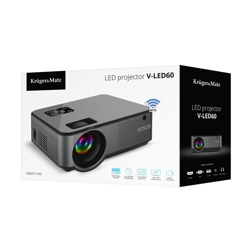 -Projetor Kruger & Matz V-LED60 LED FullHD Wi-Fi 1080p (1920x1080).