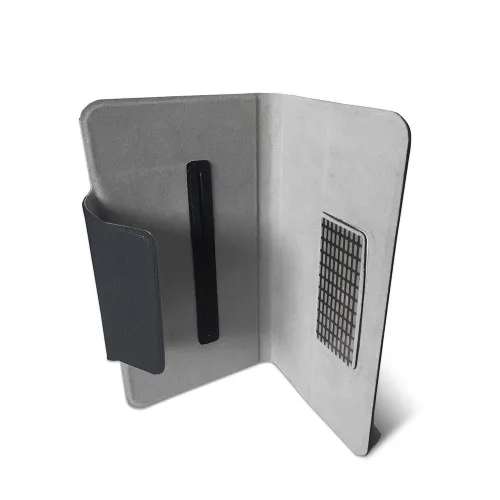 Ele fornece uma tampa traseira dobrável que abre a câmera para tirar fotos facilmente.