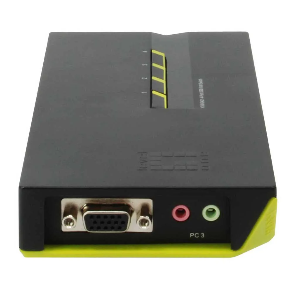 O switch KVM KVM 0421 USB de 4 portas com áudio da LevelOne oferece aos usuários um switch KVM fácil de instalar que pode gerenciar quatro computadores a partir de um único monitor, teclado e mouse. Com suporte de áudio, os usuários podem conectar um único conjunto de alto-falantes diretamente ao switch KVM e desfrutar de ouvir música e assistir filmes de qualquer computador sem trocar de cabo. Ele permite que os usuários acessem, controlem, inicializem e reiniciem quatro computadores multimídia habilitados para USB usando um único teclado, mouse e monitor USB e um conjunto de alto-falantes e microfone.