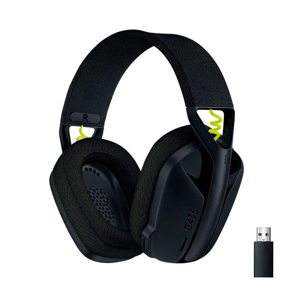 Logitech G G435, headset gamer com conectividade sem fio, Bluetooth, microfone com filtro de ruído e compatibilidade multiplataforma, na cor preta.