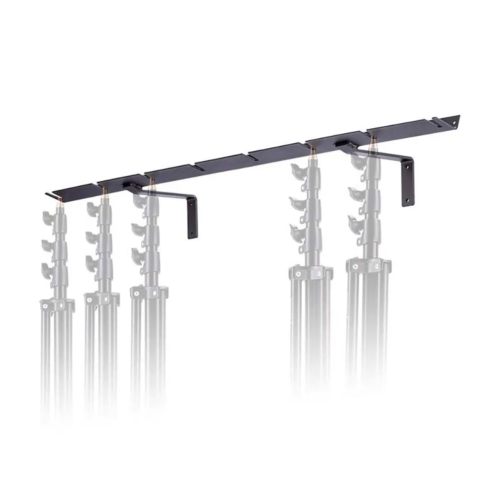 Suporte para 8 suportes de luz. Largura: 115 cm. Distância entre furos de fixação: 64,4cm. Profundidade: 19cm