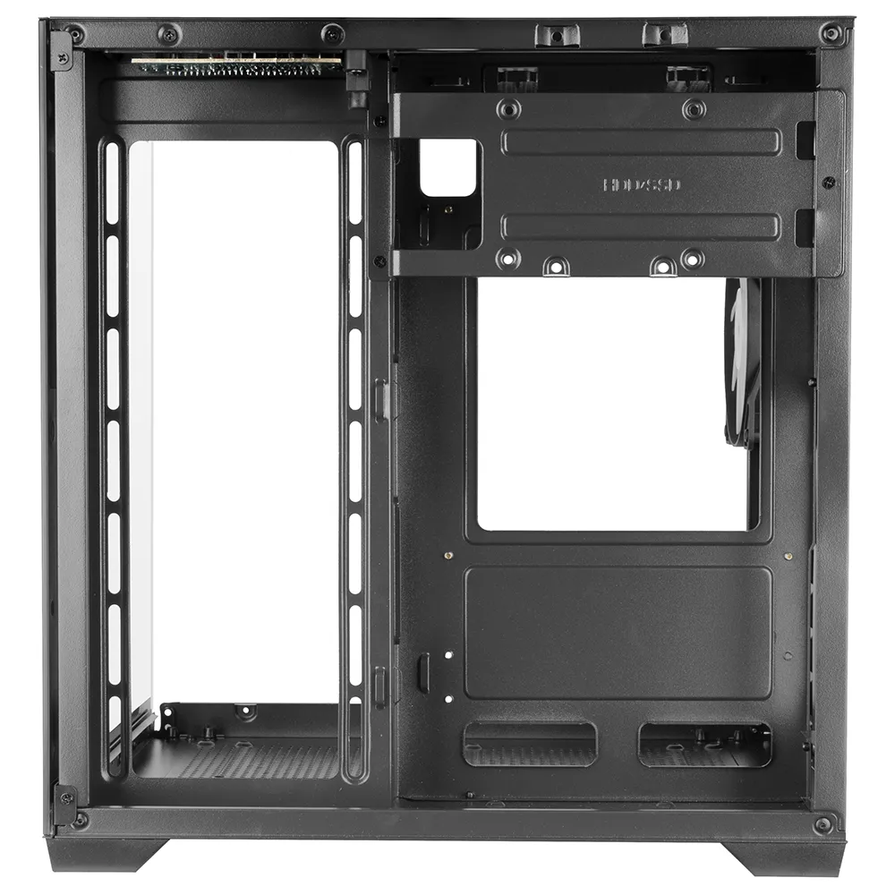 Seu vidro temperado contínuo nos painéis frontal e lateral oferece uma visão panorâmica do interior, exibindo cada componente com uma estética impecável.