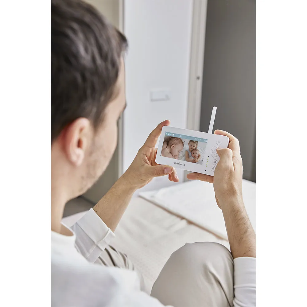Mantenha um olhar atento sobre o seu bebé com o monitor de bebé MINILAND Pro 4.3". Desfrute de uma visão nítida no ecrã grande de 4.3 polegadas, com um alcance de 240m sem interferências. A câmara motorizada com funções Pan & Tilt permite-lhe observar todo o quarto, para que nunca perca um momento. Acalme o seu bebé com comunicação bidirecional e melodias suaves, enquanto monitoriza a temperatura do quarto com alarmes. Com alimentação por bateria para ambas as unidades e a capacidade de visualizar duas câmaras em simultâneo num ecrã multi-visualização, este monitor oferece total tranquilidade e flexibilidade, dia e noite