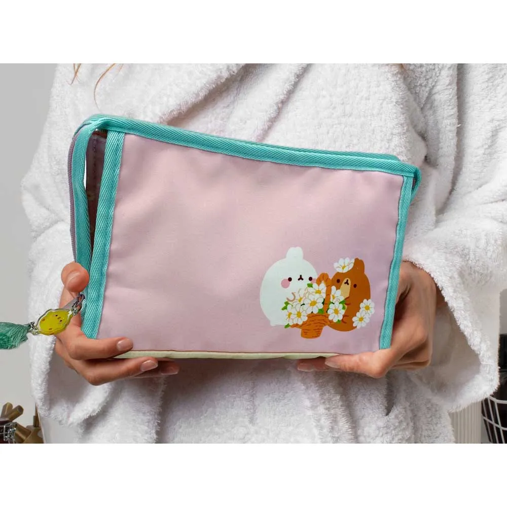 Viaje com o estilo mais adorável e mantenha seus itens essenciais perfeitamente organizados com a nécessaire oficial Molang no encantador design "Blossom". Entre no mundo doce e gentil de Molang e Piu Piu toda vez que você fizer as malas para uma viagem, for à academia ou simplesmente organizar o balcão do seu banheiro. Esta charmosa nécessaire é mais do que apenas armazenamento; é uma pitada de felicidade para sua rotina diária, tornando-a um acessório essencial para todos os fãs.