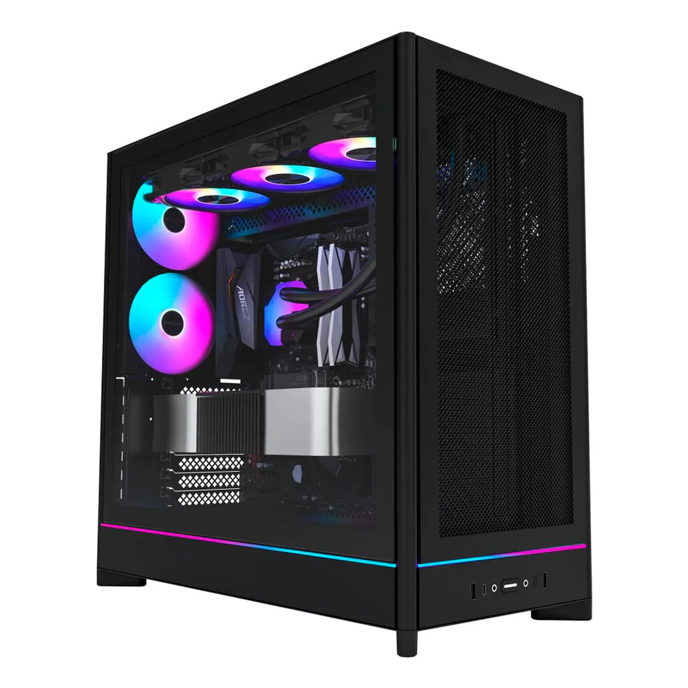 Capacidade de Resfriamento Excepcional: Inclui duas ventoinhas frontais ARGB PWM de 140 mm pré-instaladas e uma ventoinha traseira ARGB PWM de 120 mm para desempenho imediato de alto fluxo de ar.
