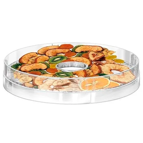 Projetado para lotes generosos, este secador de alimentos vem equipado com cinco bandejas grandes e espaçosas, cada uma com 31 cm de diâmetro.