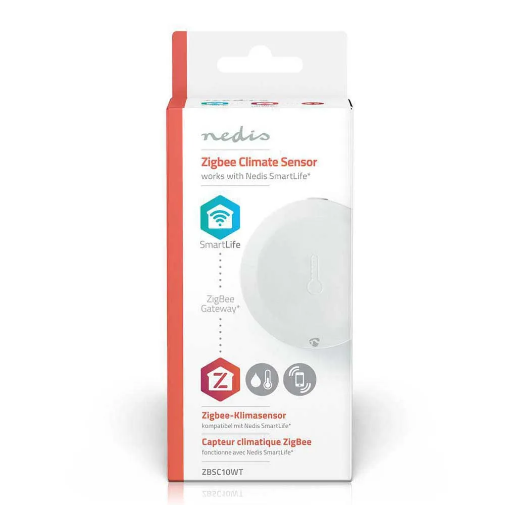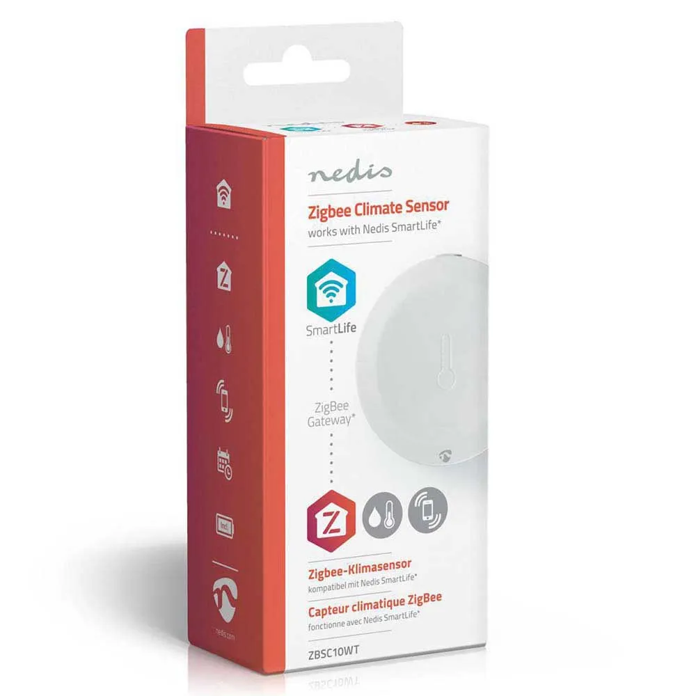 Este sensor climático inteligente mede a temperatura ambiente (0 - 40 °C) e a humidade (0 - 95%) no ar e envia estas informações para a sua aplicação Nedis SmartLife.