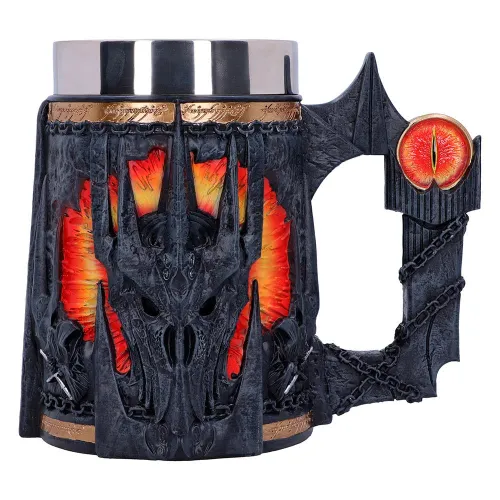 Desencadeie o poder de Mordor com a Caneca de Sauron NEMESIS NOW oficialmente licenciada. Esta caneca ricamente detalhada captura o Senhor do Escuro em toda a sua glória imponente, apresentando seu icônico capacete pontiagudo e armadura temível esculpidos em resina de alta qualidade. A alça é magistralmente forjada no Um Anel, completa com sua inscrição sombria. Um inserto removível de aço inoxidável garante que seja perfeita para sua bebida favorita e fácil de limpar. Uma peça de destaque deslumbrante para qualquer coleção, esta caneca é indispensável para qualquer fã de *O Senhor dos Anéisque queira trazer um pedaço da Terra Média para casa