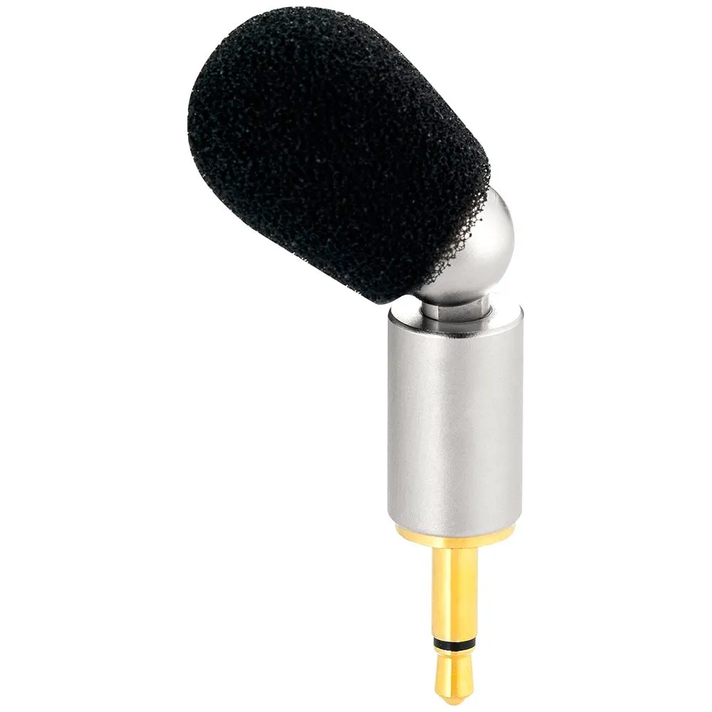 O prático microfone plug-in transforma seu gravador de voz móvel em um microfone de entrevista.