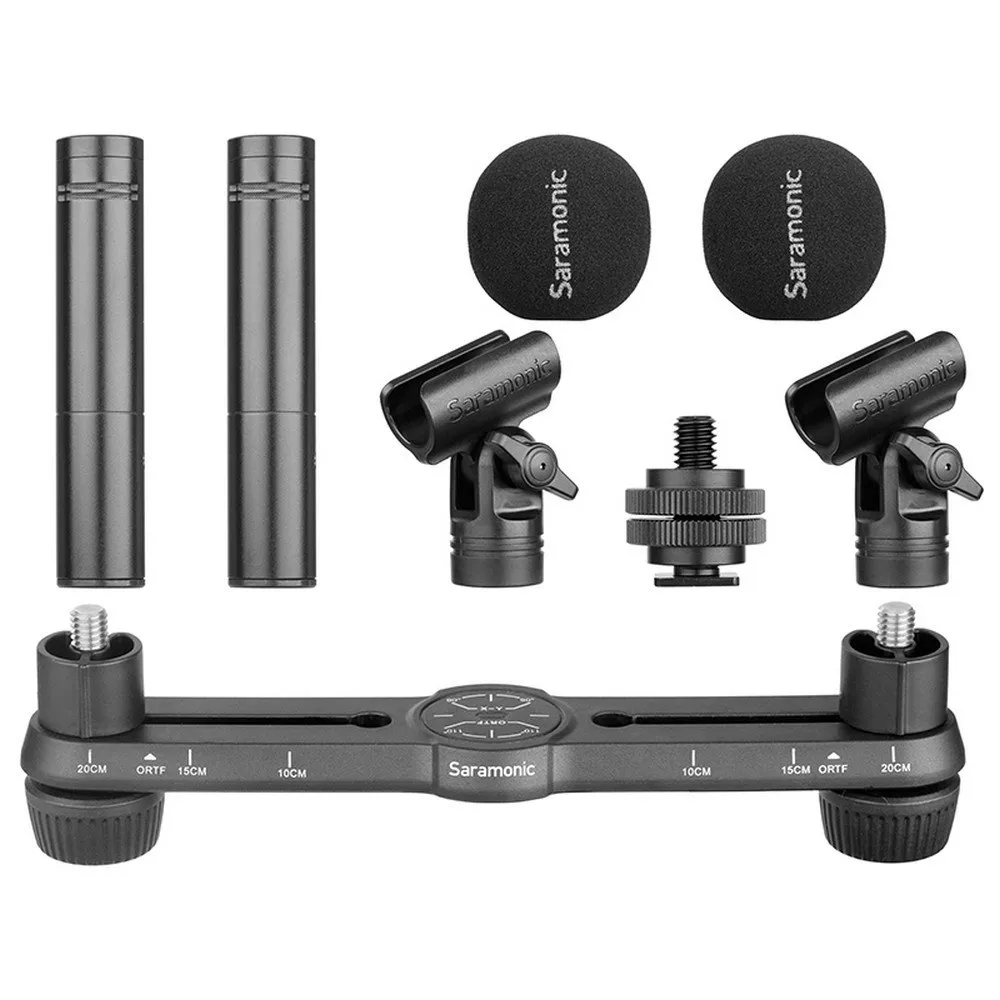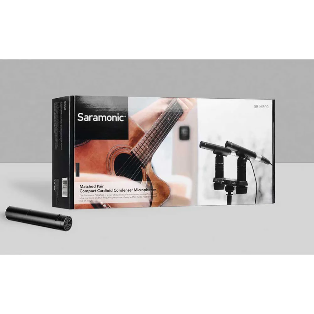 O Saramonic Sr M500 é um par de microfones condensadores de qualidade de estúdio com ruído ultra baixo e resposta de frequência total, projetado para gravação em estúdio e ao vivo no palco. Eles são ideais para gravações estéreo, como overheads de bateria, gravações de sala estéreo, instrumentos acústicos, coros ou qualquer lugar onde você empregaria um microfone condensador de diafragma pequeno, individualmente ou como uma matriz estéreo. Exceto para gravação de música, o Sr M500 também é excelente para gravações ambientais e diálogo interno em sets de filmagem.