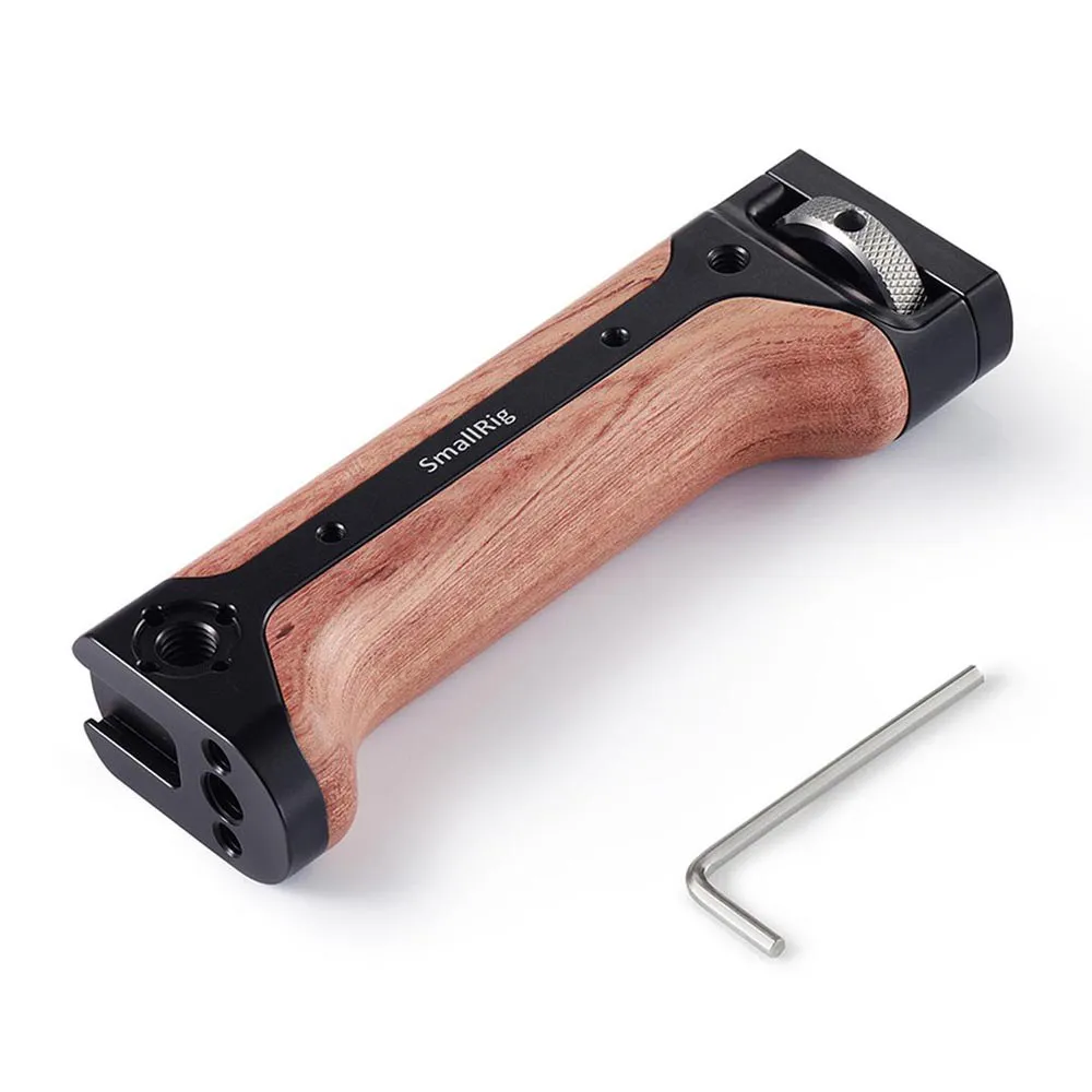 O punho SmallRig para Zhiyun WEEBILL LAB e DSLR Camera 2276 foi projetado para segurar seu cardan para entrar em uma posição suspensa acessível e fornecer vários pontos de montagem para acessórios. A alça é presa ao WEEBILL LAB por meio de um parafuso de orelha de 1/4 ”e dois pinos de localização que correspondem aos orifícios do WEEBILL LAB para evitar torção. Ele também foi projetado como uma alça universal para todos os gimbais portáteis e câmeras DSLR com orifícios rosqueados de 1/4 ”20 na parte inferior. Possui 1/4 ”20, 3/8” 16 e orifício de localização Arri na parte superior ou lateral para monitor e microfone. A alça vem com uma sapata fria na parte superior, além de permitir a montagem de um microfone ou braço de inclinação para monitor SmallHD diretamente. A alça de liberação rápida é fácil de instalar por meio do parafuso de aperto manual e apresenta orifícios para usar a chave Allen para apertá-la novamente. O cabo ergonômico de madeira é leve e confortável de segurar.