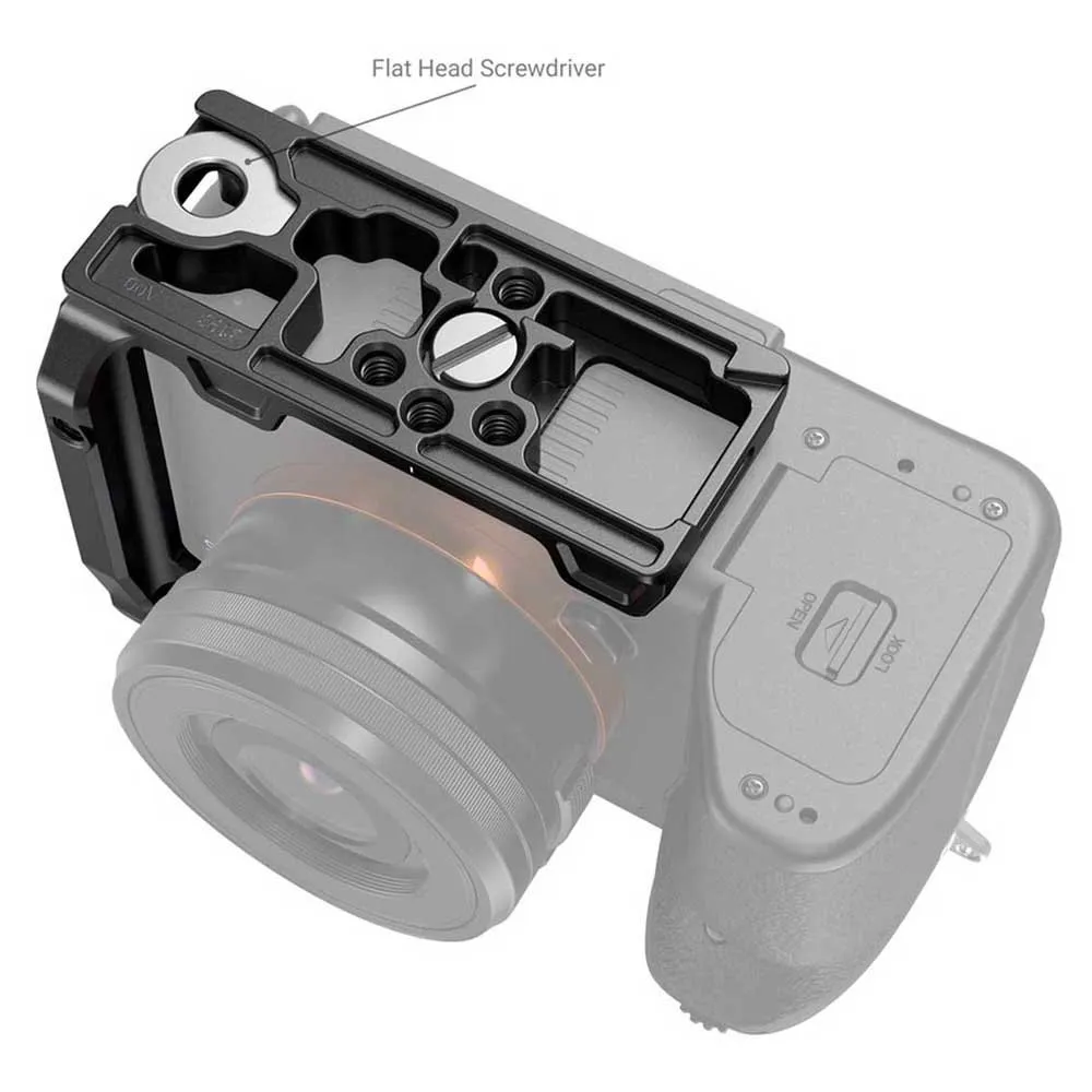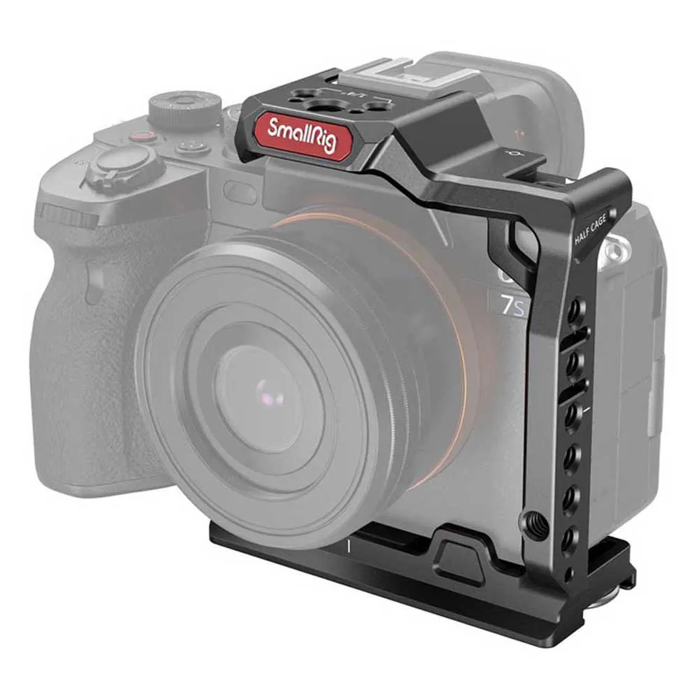 SmallRig Half Cage para Sony Alpha 7 IV / Alpha 7S III 3193 foi projetado para proteger a câmera e fornecer pontos de montagem acessórios. Trava a câmera por meio de parafusos de 1/4´´ 20 na parte inferior e evita a torção com a borda frontal elevada. As almofadas de borracha dentro da gaiola oferecem proteção total contra arranhões. Fornece vários orifícios roscados de 1/4´´ 20, permitindo a montagem de uma ampla gama de acessórios, como a alça superior HTS2756 e a montagem para monitor 2904. Sua parte superior apresenta um orifício de localização ARRI 3 / 8´´ 16 para montagem da alça superior 2165 e do monitor 2903 . A montagem de sapata fria embutida na parte superior suporta microfone e luz LED, você também pode conectar a Montagem de Monitor 2905. A parte inferior da gaiola vem com uma placa de tipo Arca embutida para conectar diretamente ao cardan DJI RS 2 e RSC 2 e recursos Orifícios roscados de 1/4´´ 20 para montagem em outras placas de liberação rápida. Uma chave de fenda de cabeça chata embutida é armazenada na parte inferior para uma montagem rápida. Além disso, um grampo de cabo HDMI opcional 3000 para Sony Alpha 7 IV / Alpha 7S III pode ser adquirido para proteger a porta HDMI.