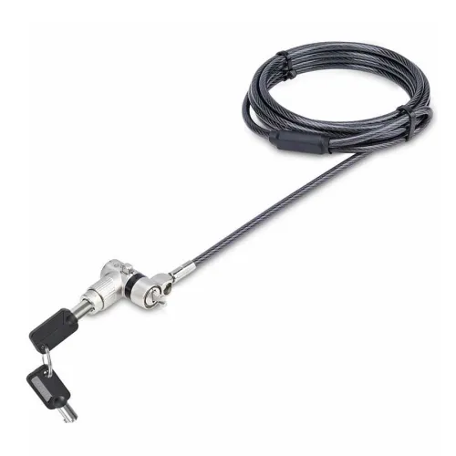 - Bloqueio universal para laptop 3 em 1: Compatível com Noble Wedge, K-Slot (T-Bar) e Nano através de ponta de travamento ajustável - Cabo de aço carbono resistente a cortes de 2 m e 4,4 mm de espessura - Suporta até 98 kg de força de tração
