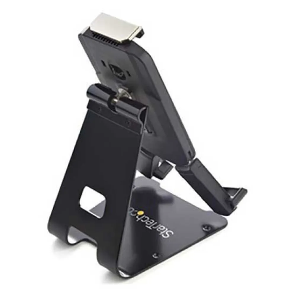 - Incline (180°) e gire (360°) seu tablet para ajustá-lo ao ângulo de visão ideal dependendo da sua aplicação, seja no modo retrato ou paisagem. O design de 2 pontos de articulação ajuda a fornecer a mesma amplitude de movimento para tablets pequenos e maiores.
