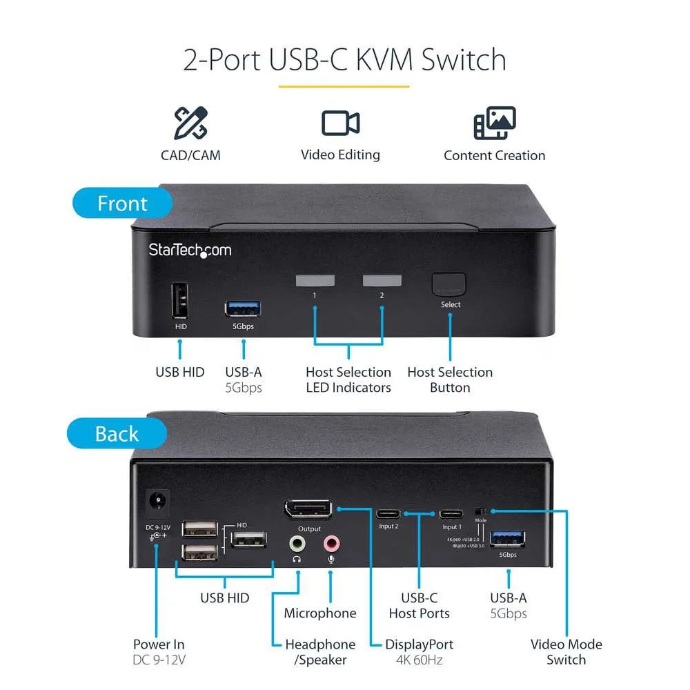 - Escolha entre 4K 60Hz com portas de hub USB 2.0 ou adicione duas portas de hub de 5 Gbps com 4K 30Hz, usando o interruptor de modo na parte traseira do KVM.