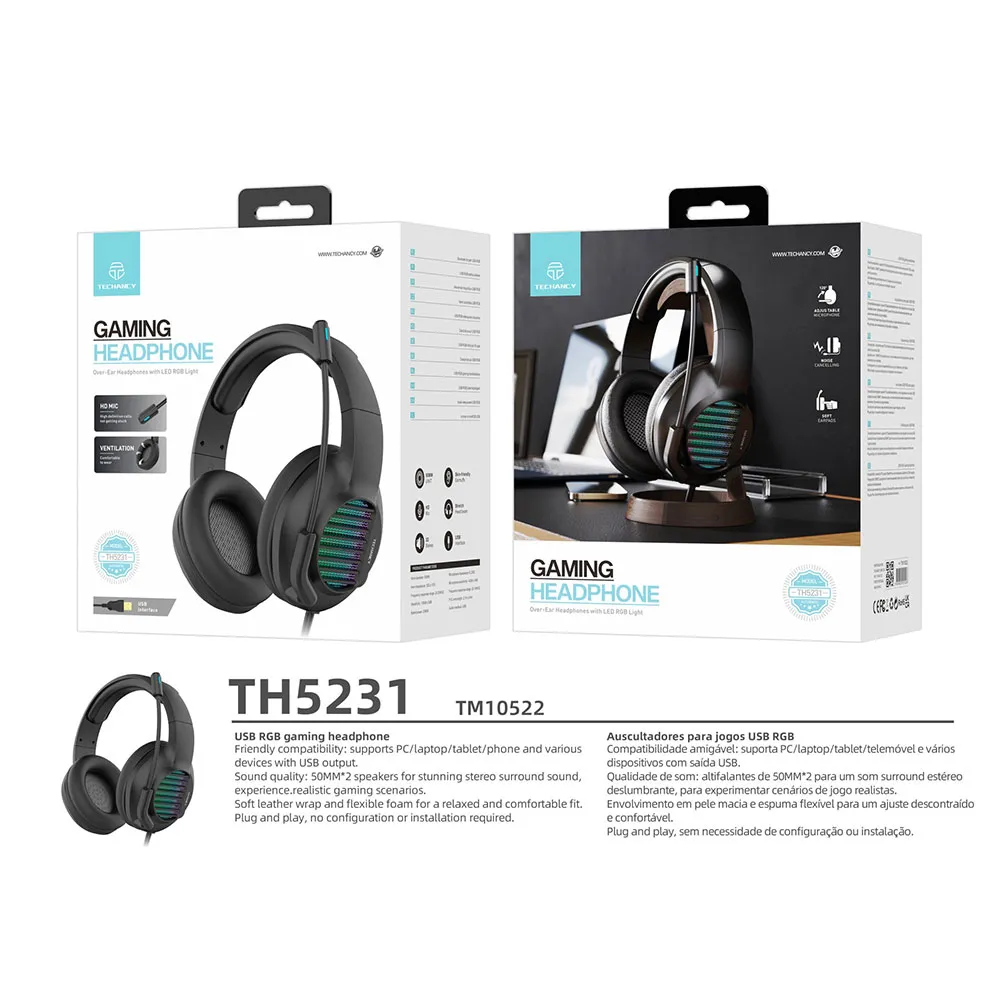 Descricao do producto:Os Techancy Static RGB Gaming Headset são uns auscultadores com luzes RGB e um microfone que combinam uma iluminação fresca, uma excelente qualidade de som e funções práticas.