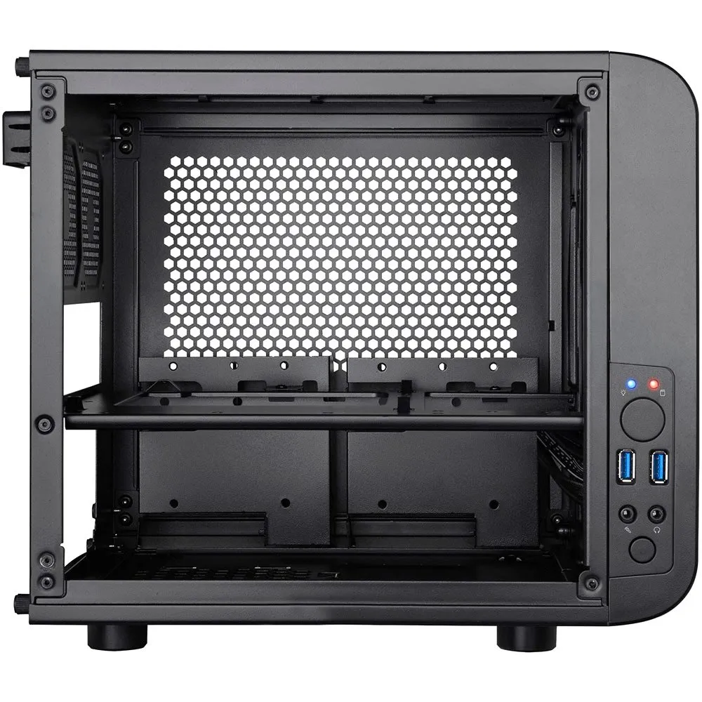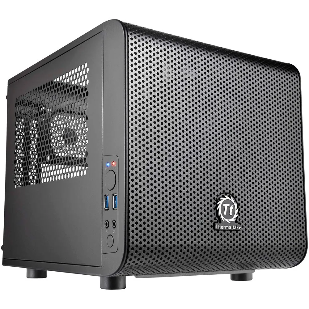 Thermaltake Core V1. Fator de forma: Cubo, Tipo: PC, Material: SPCC. Localização da fonte de alimentação: Inferior. Diâmetros das ventoinhas frontais suportados: 120.140.200 mm, Diâmetros das ventoinhas traseiras suportados: 80 mm. Tamanhos de HDD suportados: 2,5,3,5´´. Largura: 260 mm, Profundidade: 316 mm, Altura: 276 mm