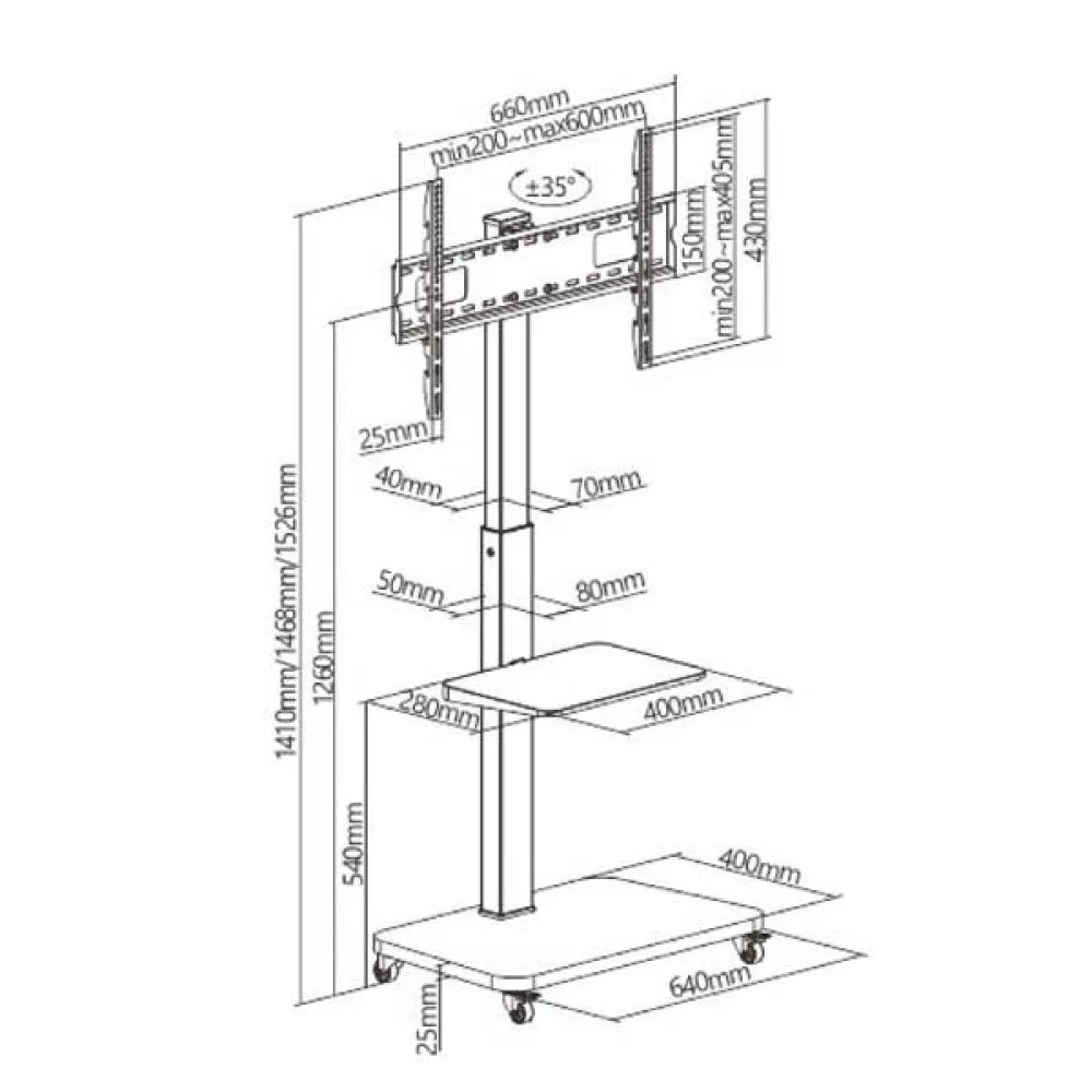 Tecnologia Tm Electron Suporte de TV com rodas de 37 a 75 polegadas 40kg