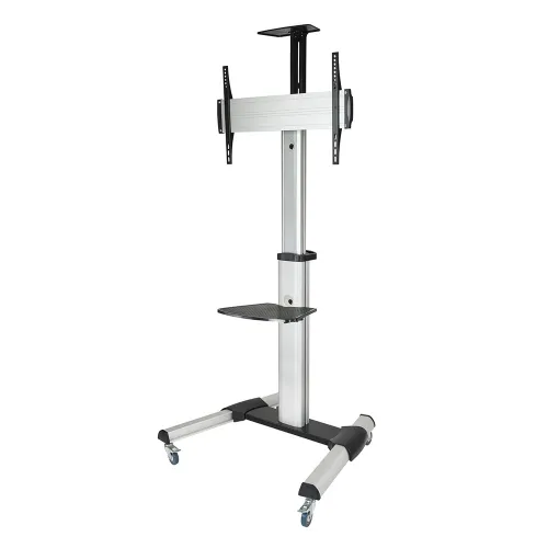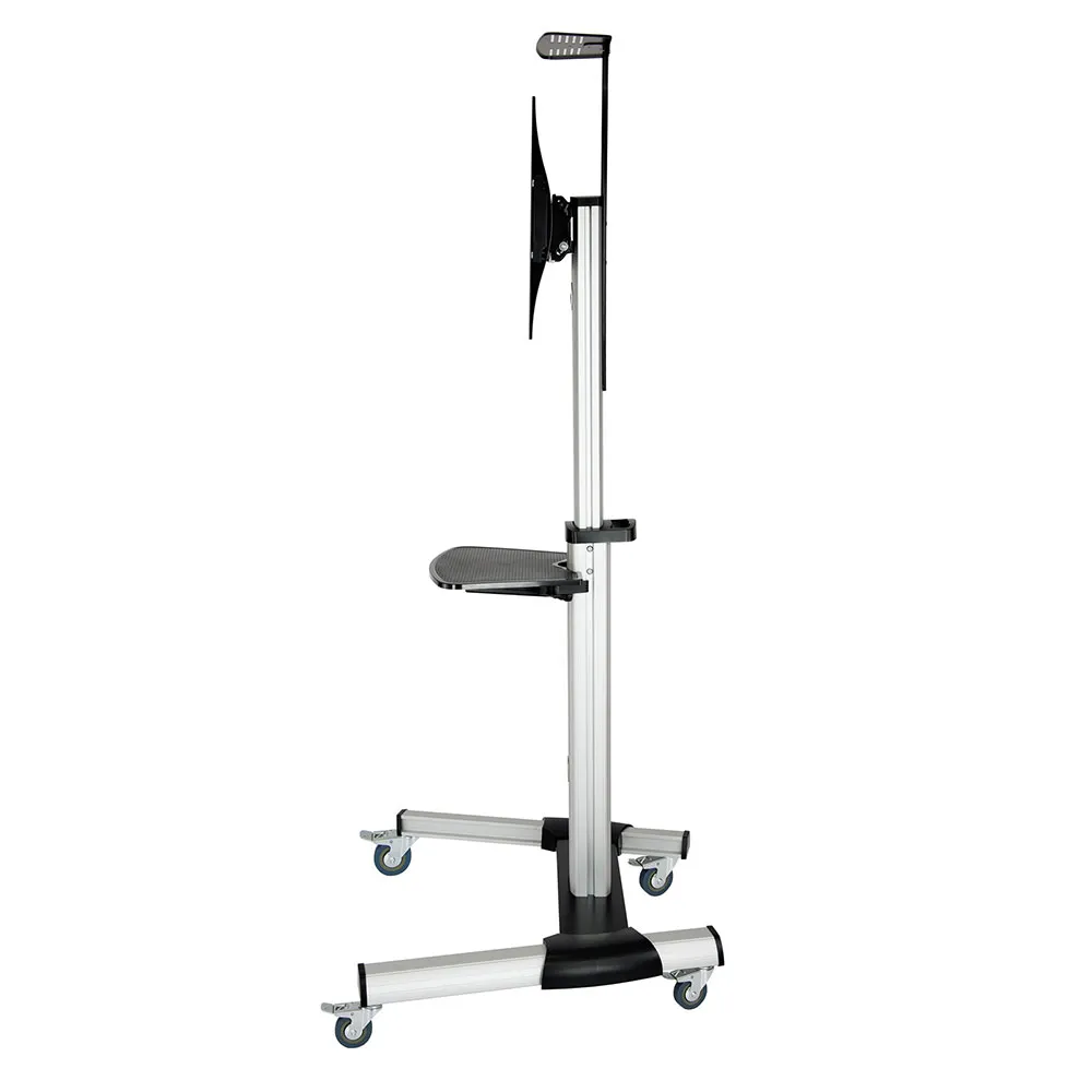 Suporte de chão de alumínio para monitor/TV LCD, PLASMA e LED (37´´-70´´) em posições vertical e horizontal com bandeja de DVD e suporte para câmera.
