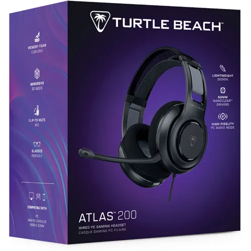 Experimente áudio de jogo imersivo com o headset com fio Turtle Beach® Atlas™ 200 para PC, consoles e dispositivos móveis.
