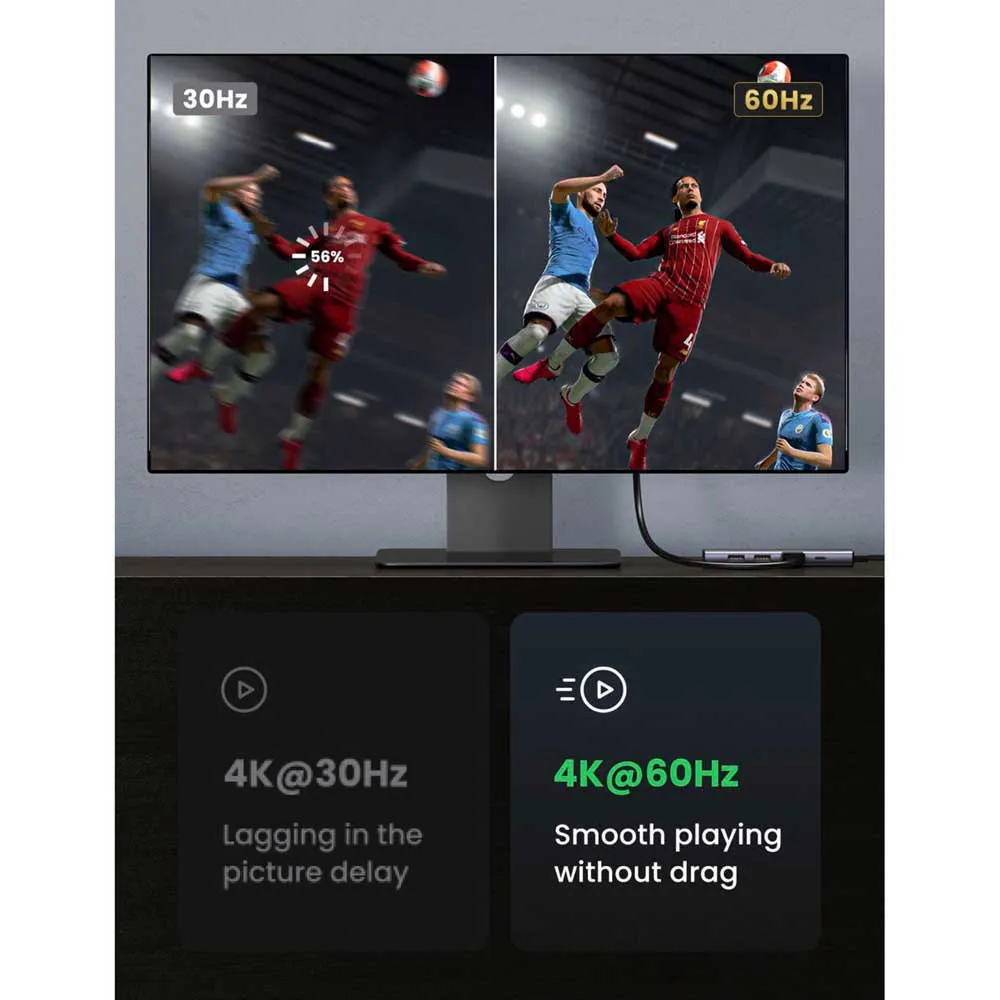 Este hub suporta saída de vídeo 4K a 60 Hz, o que garante rolagem suave em monitores compatíveis.