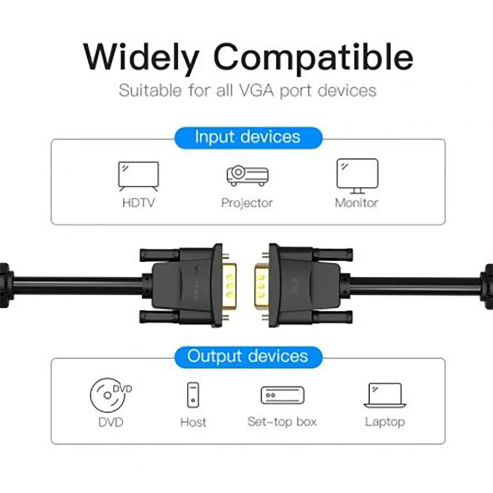 - Ampla Compatibilidade: Este cabo VGA pode ser usado para conectar uma variedade de dispositivos equipados com VGA, como computadores, monitores, projetores e HDTVs. É uma solução ideal para apresentações, conferências ou para configurar um sistema de home theater.
